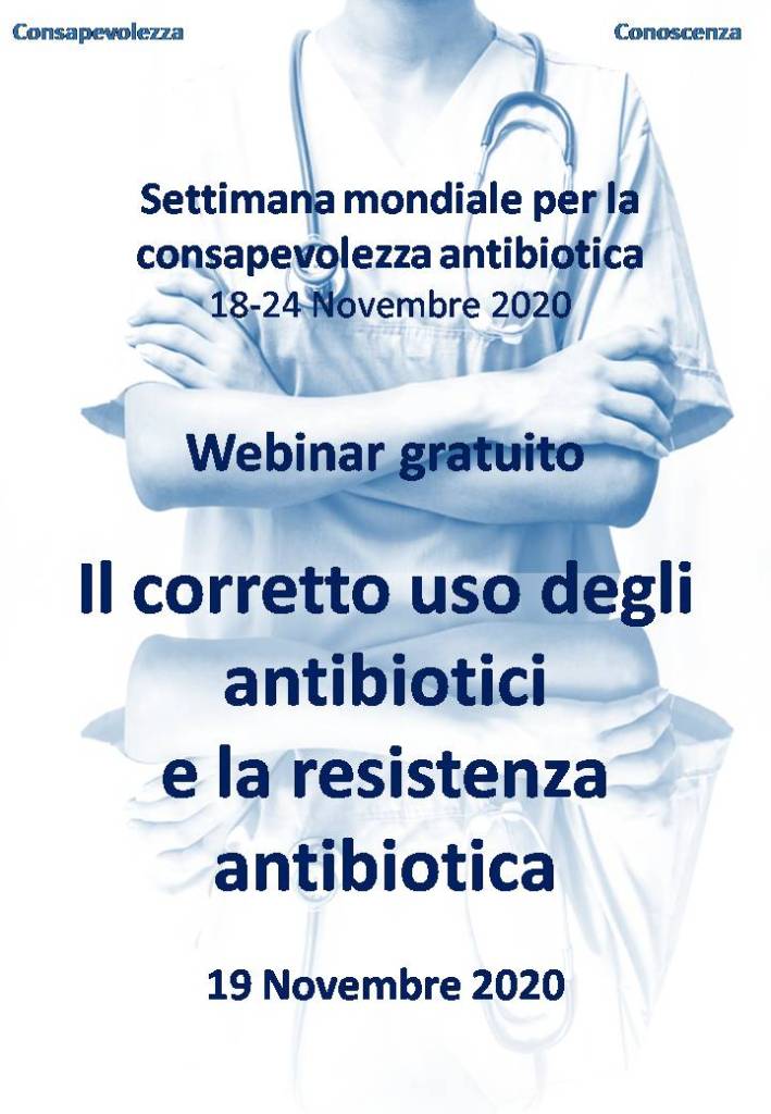 Seppur ci rendiamo conto del momento difficile che tutti stiamo vivendo per la seconda ondata della pandemia, abbiamo pensato di organizzare un webinar, programmato per il 19 Novembre, in occasione della settimana mondiale della consapevolezza degli antibiotici, per parlare di resistenza antibiotica e corretto uso della terapia antibiotica. Il webinar sarà gratuito e aperto a tutti.